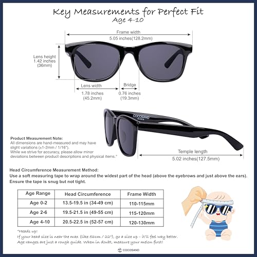 Origin: ImportedIdeal for kids aged 4-10, including toddlers. Suitable for those with a head circumference under 21 inches. Perfect kids sunglasses, toddler sunglasses, and suitable for both boys and girlsMade of TPE, a non-toxic and BPA-Free frame material. Ensures kids' safety, while being flexible and sturdy, great for kids polarized sunglassesLightweight polarized lenses block UVA, UVB, and harmful UV rays. Offer HD vision, anti-glare, anti-fog, and shatterproof features. Reduce eye fatigue during outdoor activities, protecting kids' eyes, great sunglasses for kidsClassic square - designed kids sunglasses suit both girls and boys. They fit all face shapes, pair well with outfits, and stay in place outdoors. They shield eyes from sun rays and enhance looks, a must - have for kids' outdoor adventuresPackage includes sunglasses, a soft cotton bag for carrying, a glasses cleaning cloth, a product manual, and gift - ready packaging Perfect for everyday use. premium materials and excellent craftsmanship ensure long-lasting durability.