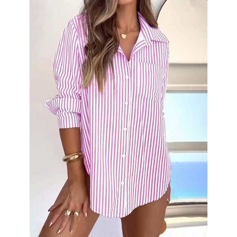 This Women's Shirt Blouse Striped Casual Long Sleeve Shirt Collar Regular Tops Daily Buttons Print Pink Navy Blue Summer Spring combines elegant design with practical functionality. Every detail has been carefully considered to ensure you get the finest possible experience. The finest construction means this product will serve you well for years to come.