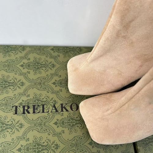 Women's Knee High Boots Nude Suede Wide Calf Stiletto Long Booties Square Toe Pull On High Heel Riding Boots for Women Ladies Fahion Dress Tall Boots