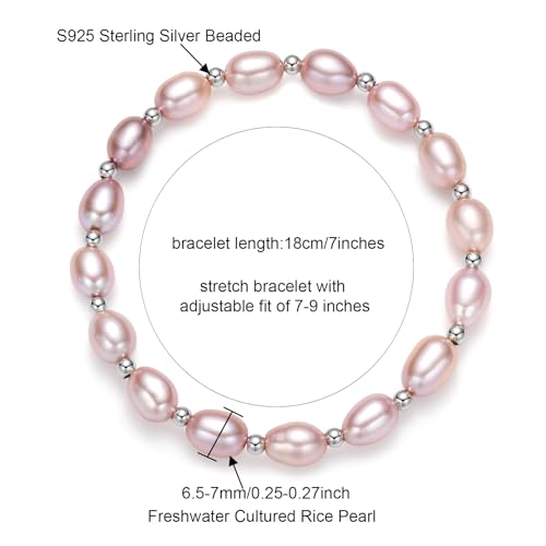 • This is a genuine freshwater cultured oval baroque pearl and sterling sliver beadeds bracelet, each pearl diameter is about 6.5-7mm, women's stretch bracelet with adjustable fit of 7-9 inches. The pearl bracelet is total 7.0 inches long before knotted(18cm), fits for wrist 6"-8"
