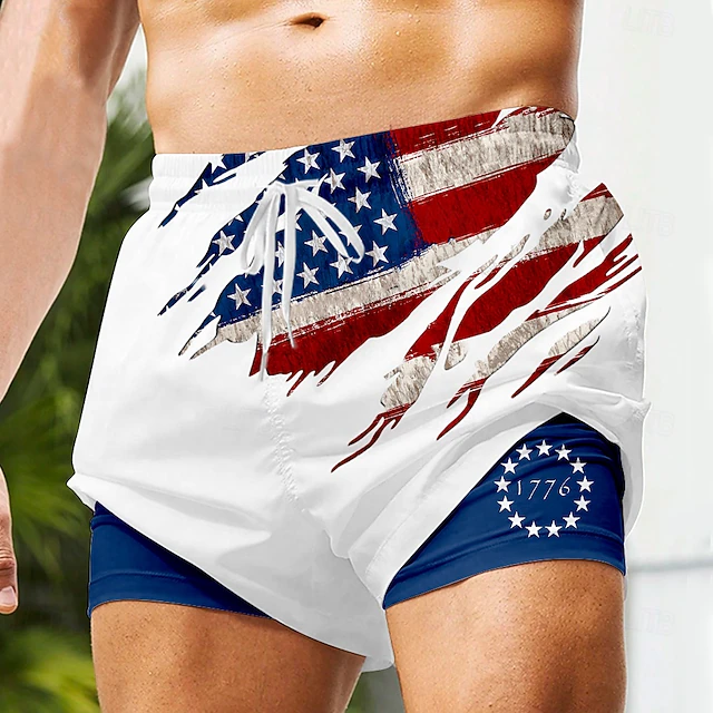 $21.99 - Men's US Flag Patriotic 1776 Lined Shorts 2 in 1 Board Shorts Swimming Trunks Mid Waist Hawaiian Vacation Beach Wear Side Pockets With Compression Liner Elastic Drawstring Waist Designer Clothing 2025. Shop for cheap Flag Print online? Buy at lightinthebox.com on sale today!