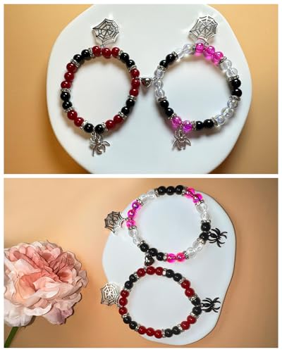 4Pcs Spider Matching Bracelets Magnetic Bracelets for Couple Women Men Friendship Bracelets Heart Energy Stone Bracelets Stretch Beaded Bracelets Halloween Party Jewelry Gifts
