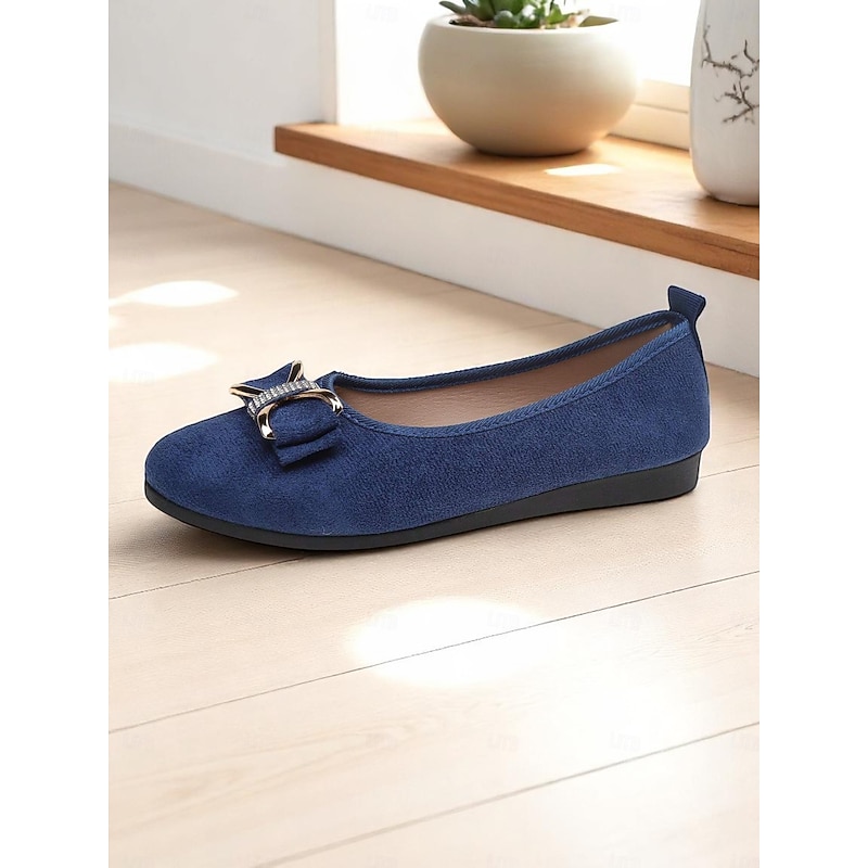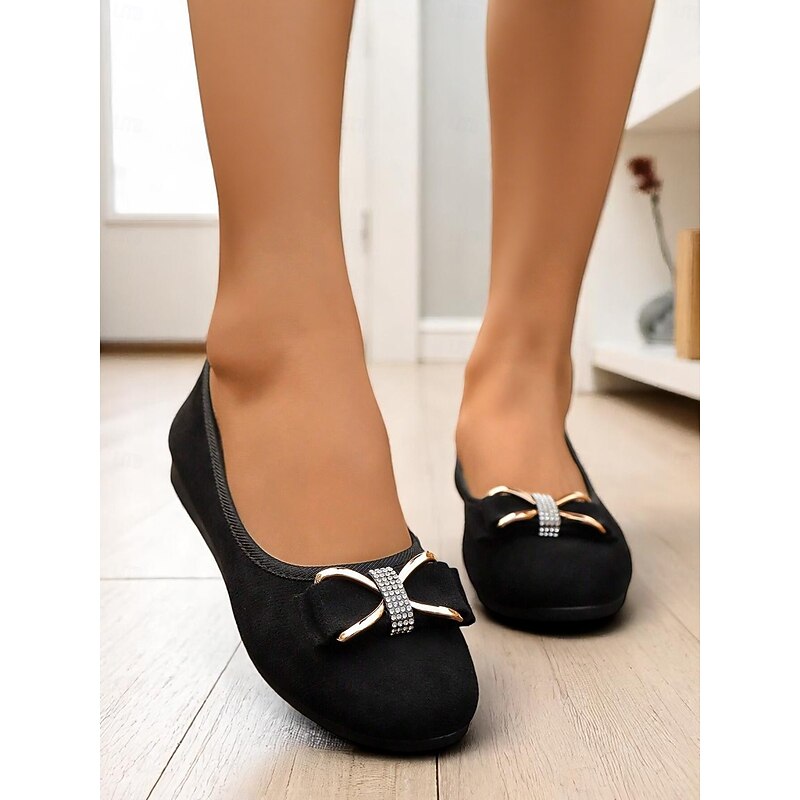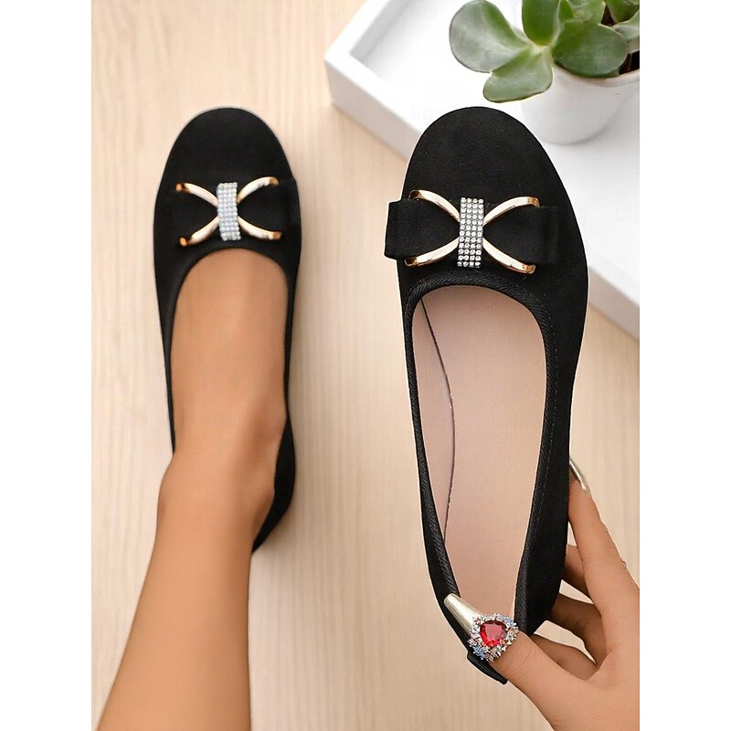 Women's Red Bow Flat Shoes – Elegant Faux Suede Slip-Ons for Office, Daytime Dates and Casual Commuting