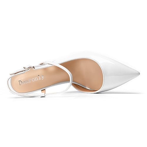 DearOnly Womens Sexy Slingback Ankle Strap Buckle Pumps High Stiletto Heel Close Pointed Toe Patent Leather Wedding Prom Shoes 3.9 Inches Heels
