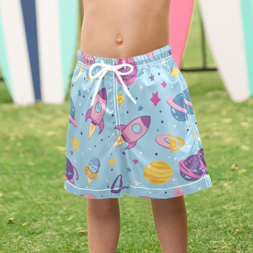 Pigsaly Boys' Swim Board Shorts Space Light Blue Rocket Boy's Swim Trunks Kids Swimwear XS