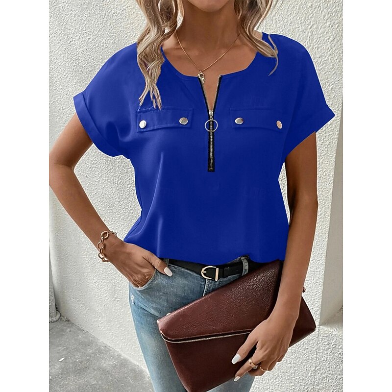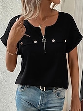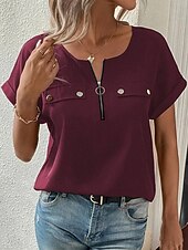 This Women's T Shirt Solid Color Plain Fashion contemporary Casual Short Sleeve Crew Neck Regular Tops Daily Weekend Zipper Buttons Black Wine Blue Purple Summer combines elegant design with practical functionality. Every detail has been carefully considered to ensure you get the best possible experience. The first-class construction means this product will serve you well for years to come.