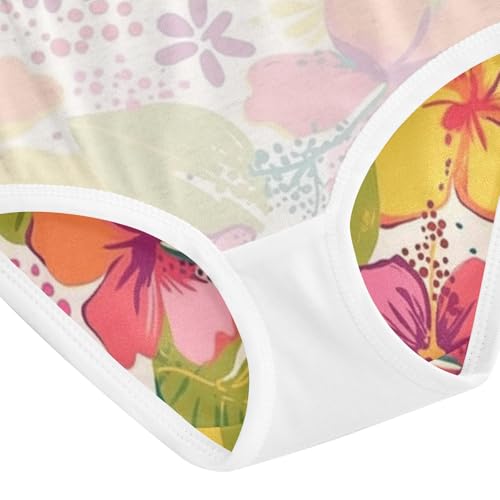 Girls' Hipster Panties Breathable Underwear for Young Girls Bright Tropical Hibiscus Floral Pattern