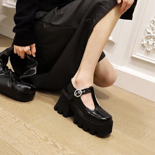 Women's Retro Wingtip T Strap Lug Sole Platform Mary Janes Shoes Fashion Round Toe Adjustable Buckle Chunky Heel Pumps Increase Height Lolita Oxfords Dress Shoes