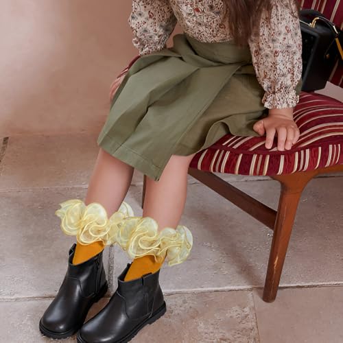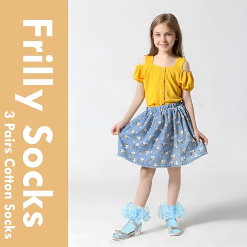 3 Pairs Baby Girl Double Lace Turn Cuff Cotton Girls Ruffle Socks Frilly Dress Socks for Toddlers and Kids