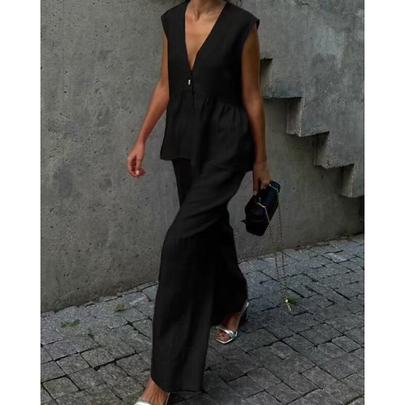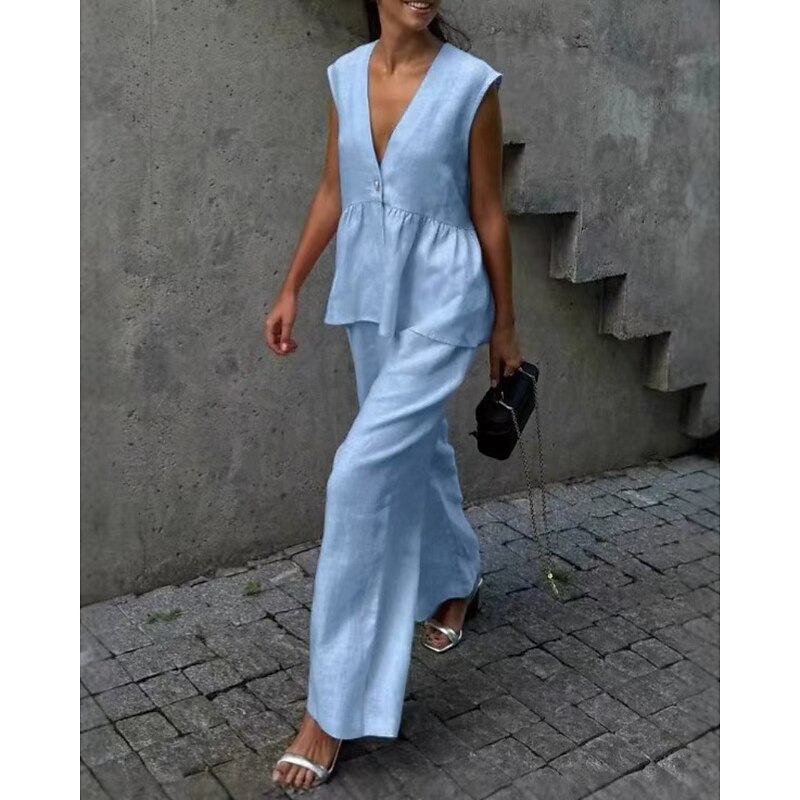 This Women's Active Fashion Cotton Linen Shirts Blouse Pants Sets Sleeveless V Neck Solid Color Dubbele Rij Knopen Vacation Casual Daily Black Pink Light Blue Summer Regular Fit combines elegant design with practical functionality. Every detail has been carefully considered to ensure you get the finest possible experience. The finest construction means this product will serve you well for years to come.
