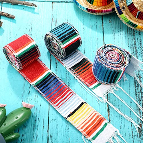 6 Pcs Mexican Sash Belts for Women or Men Serape Cinto Mexicano Colorful Striped Runner Fringe Cotton Mexican Sash Belts Black Red Royal Blue for Cinco De Mayo Fiesta Party Graduation Wedding