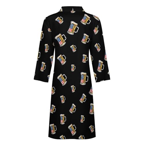 U.S. Flag Beer Mens Bathrobe gentle Long Bath Robe thermal Spa Robe Nightgown Quick Dry with Waist Belt