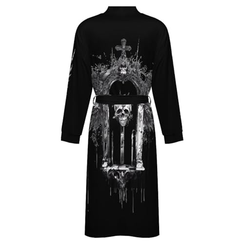 Crosses Skull with Wings Soft Robe Long Sleeve Bathrobes V Neck Sleepwear Spa Robes with Belt Men Woman