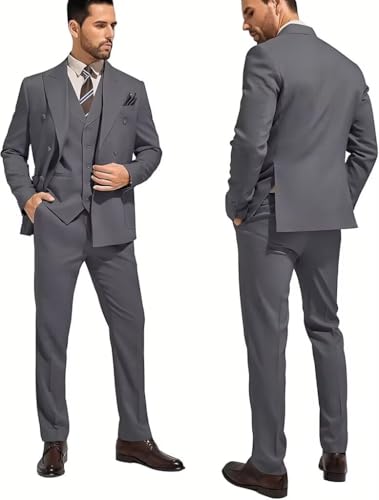 Men's 3 Piece Suits Slim Fit Double Breatsed Suit for Men Solid Blazer Jacket Vest Pants Tuxedo Set