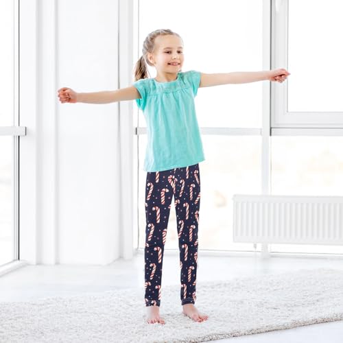 Christmas Candy Cane Polka Dots Blue Girls Leggings Ultra Soft Compression Yoga Gym Pants for Kids 4-10T