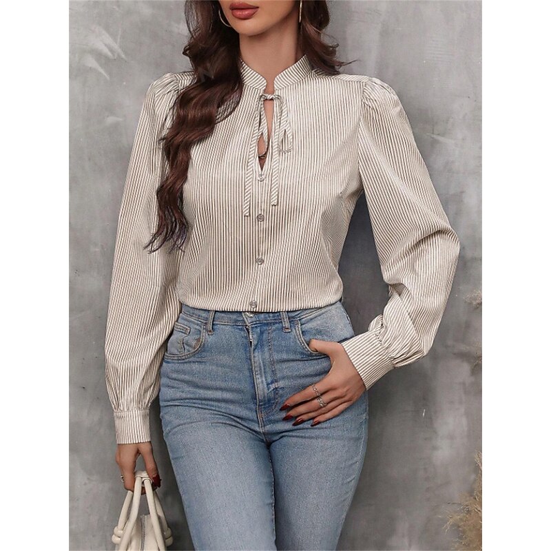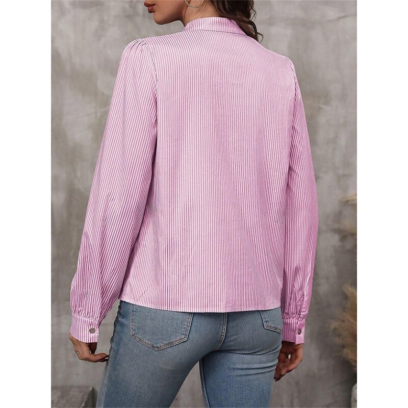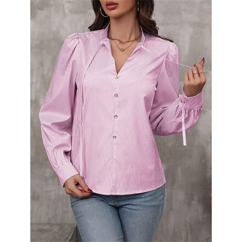 This Women's Shirt Blouse Striped sleek Casual Long Sleeve V Neck Regular Tops Work Daily Going out Patchwork Pink Blue Green Khaki Summer Spring Fall combines elegant design with practical functionality. Every detail has been carefully considered to ensure you get the best possible experience. The first-class construction means this product will serve you well for years to come.