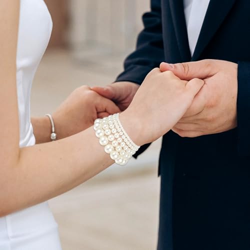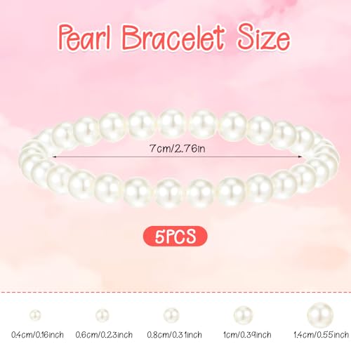 Molain 5 Pcs Pearl Bracelets for Women Stretch Strand Bracelets Pearl Bracelets Bridal Wedding Elastic Bracelets Stackable Faux Pearl Bracelets for Lady Party Jewelry Pearl Beaded Bracelets