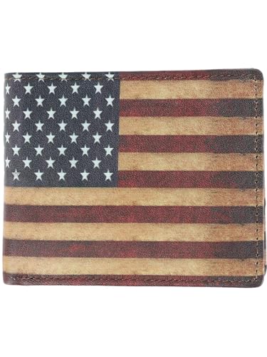 CTM Men's Leather RFID Vintage American Flag Bifold Passcase Wallet, Multi-Color
