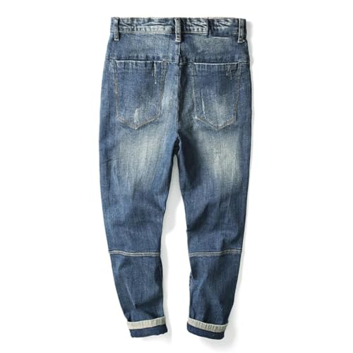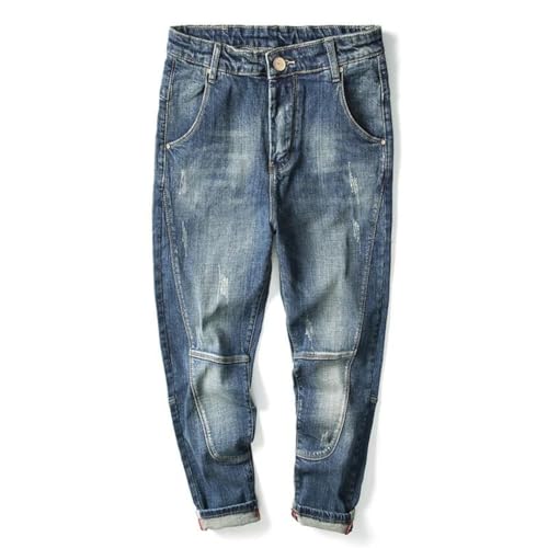 popular ! Men Hip Hop Harem Pants Stretch Retro Blue Loose Fit Patchwork Streetwear Casual Denim Pants