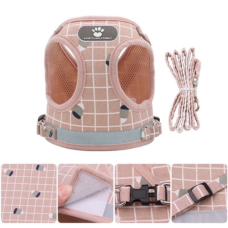 More information about plaid cat harness and lead set escape proof reflective supple mesh chest harness for kitten small dogs puppy no pull uncomplicated on step in vest harness for chihuahua walking training outdoor gray m