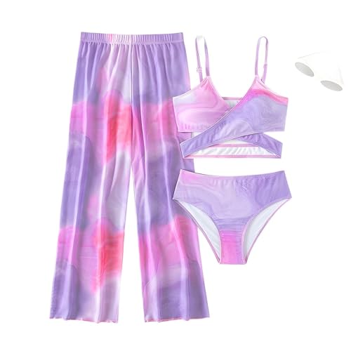 popular ! Girls 3 Pieces Bathing Suit Tropical Print Bikini Set Kids Qui𝐜k Dry Swimwear Cover-Up with Rash Guard Pants