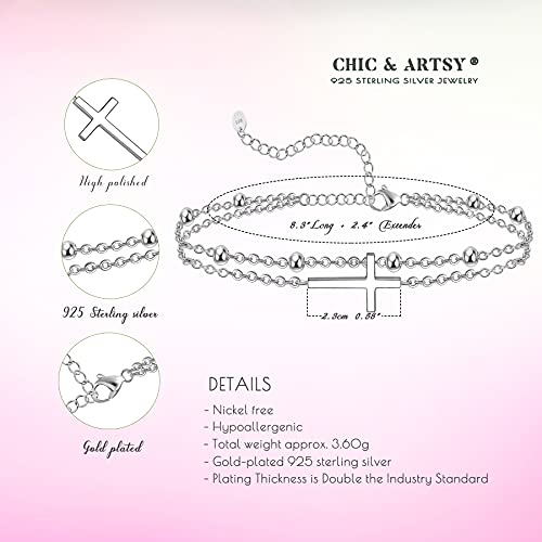 Material: Sterling SilverMetal type: Sterling SilverClasp type: Lobster ClawChain type: Cable ChainGem type: No gemstoneItem type name: Anklets✞ One of the most ancient religious symbols, the cross symbolizes life, immortality, and the union of Heaven and Earth. It possesses spiritual power, embodying sacrifice, triumph, and salvation. When you carry the cross, infinite love surrounds you. Honor your personal beliefs.✞ SIZE & MATERIAL ♥ Cross size:0.45 x 0.9. Beaded diameter:3mm. Chain length: 10.6, adjusts to 8.7 *** Hypoallergenic gold plated sterling silver, nickel-free and lead-free, safe for everyone even for those with sensitive skin.✞ PACKAGING ♥ Each piece of our jewelry comes complete with a cleaning cloth and a delicate gift box and ready for giving.✞ IDEAL GIFT CHOICE ♥ In case you're tired of searching for an interesting thing for gifts, then our minimalist jewelry would be a good choice. They are well-suited for any gift-giving occasion, etc party, wedding, ceremony, graduation, dating, and vocation. An understated and exclusive cross double chain anklet bracelet is a perfect gift for yourself or someone you love.✞ AFTER-SALE SERVICE ♥We are committed to bring you a perfect shopping experience, your favourite is our greatest motivation, if you have any problems in the shopping process will be answered and resolved within 12 hours! Perfect for everyday use. superior materials and excellent craftsmanship ensure long-lasting durability.
