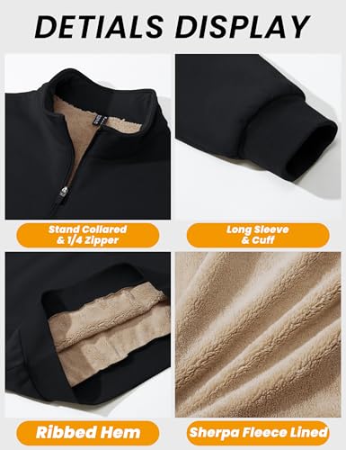 MAGCOMSEN Men's Sherpa Lined Quarter Zip Fleece Heavyweight Pullover Winter snug Sweatshirts
