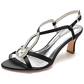 Women's Wedding Shoes Wedding Party Daily Solid Colored Wedding Sandals Bridal Shoes Bridesmaid Shoes Rhinestone Sparkling Glitter Chunky Heel Open Toe Elegant Satin Ankle Strap Wine Black White