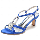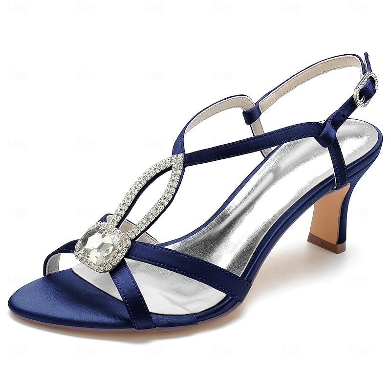 Highlights [Fabric] : Crafted from sleek, glossy satin, these wedding sandals exude sophistication and luxury. The satin material offers a rich texture that complements the overall elegance of the shoe. [Silhouette] : Featuring a classic open-toe design, these sandals offer a timeless appeal. The sturdy chunky heel provides stability and comfort, while maintaining a sleek profile that is perfect for long wear during special occasions. [Design Highlights] : These sandals are adorned with sparkling rhinestone embellishments that add a dazzling focal point. The elegant ankle strap is both sophisticated and functional, offering a supportive fit with an adjustable buckle closure for a custom feel. [Occasions] : Ideal for weddings, parties, and daily wear, these sandals are versatile enough to complement a variety of outfits and events. Whether you're the bride, a bridesmaid, or a guest, these sandals bring a touch of glamour to any celebration. [Size Range] : Available in a range of sizes to suit various foot shapes, these sandals are offered in US6 to US10.5, covering EU sizes 36 to 42 and UK sizes 4 to 8.5, ensuring a fit for most wearers. Perfect for everyday use. premium materials and excellent craftsmanship ensure long-lasting durability.