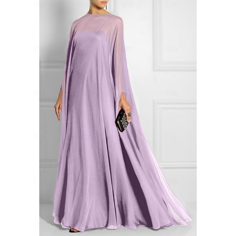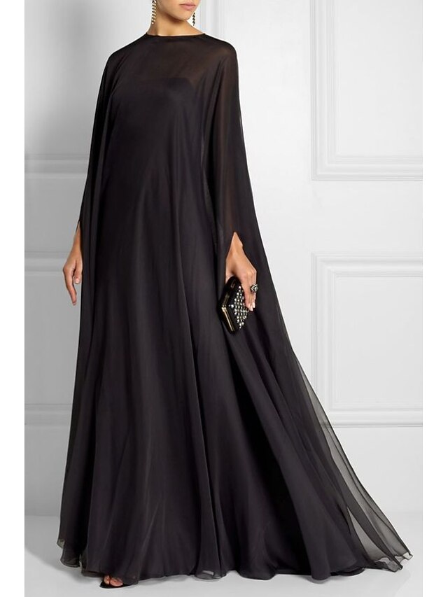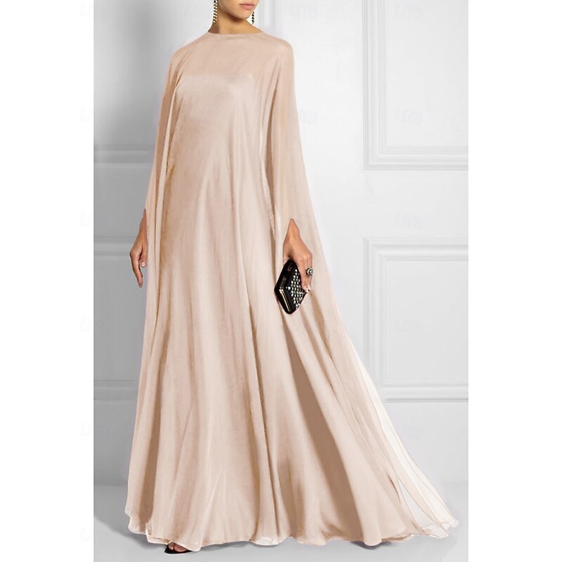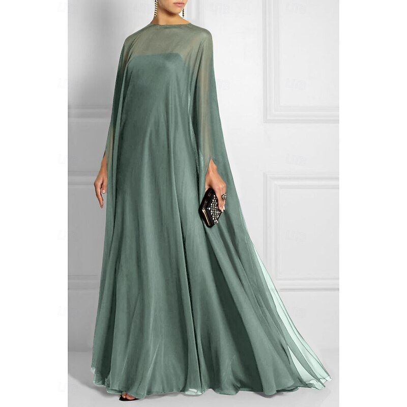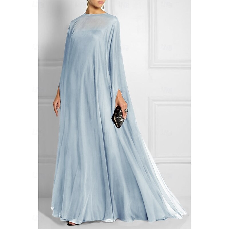 Why Choose Sheath Evening Gown Empire Dress Formal Evening Sweep / Brush Train Long Sleeve Boat Neck Fall Wedding Guest Chiffon with Pleats dress to impress?