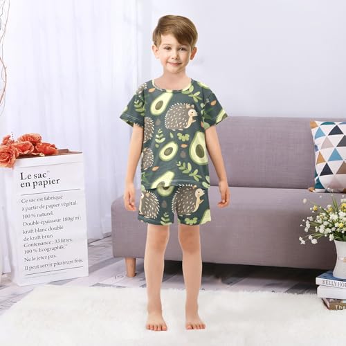ALAZA Cartoon Hedgehog Avocado Pajamas Short Sleeve 2 Piece Sleepwear Top and Bottom Pajama Set Unisex 6