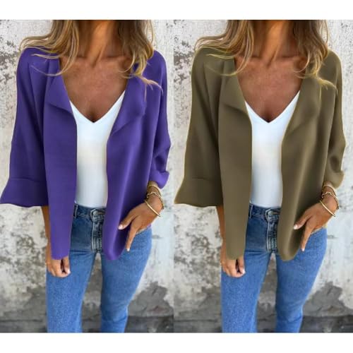 More information about Peculiaral Faux Suede Cardigan Buttonless Solid Color Lapel Jacket, 3/4 Sleeve Lightweight Jackets for Women Casual
