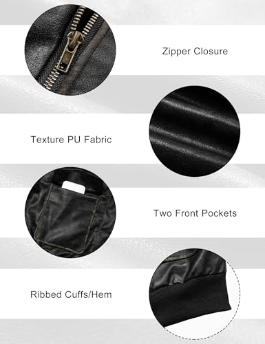 • VINTAGE DISTRESSED STYLE:Crafted from 50% PU + 50% polyester (with 100% polyester lining),this women leather jacket is not only stylish and durable but also comfortable to wear all day long.Artistically unique retro texture and hand-rubbed lines create a unique,worn-in vintage look,adding timeless charm to the design