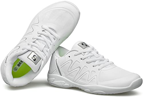 BAXINIER Girls White Cheerleading Dance Shoes Lightweight Youth Competition Cheer Sneakers Kids Training Tennis Shoes 6