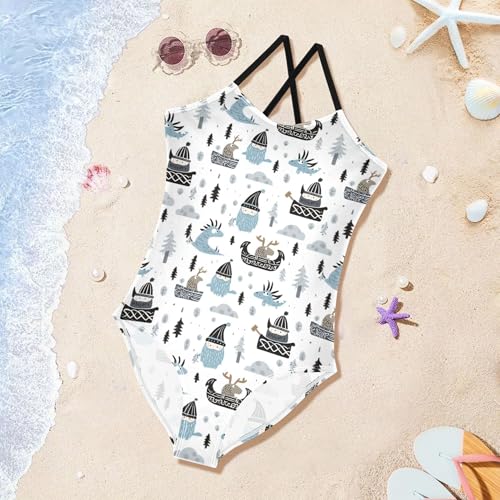 Girl 1-Piecing Swimsuits Bathing Suits for Girls Toddler Girl Swim Suit Beach Girls' Swimwear Little Vikings Trendy Scandinavian3 1